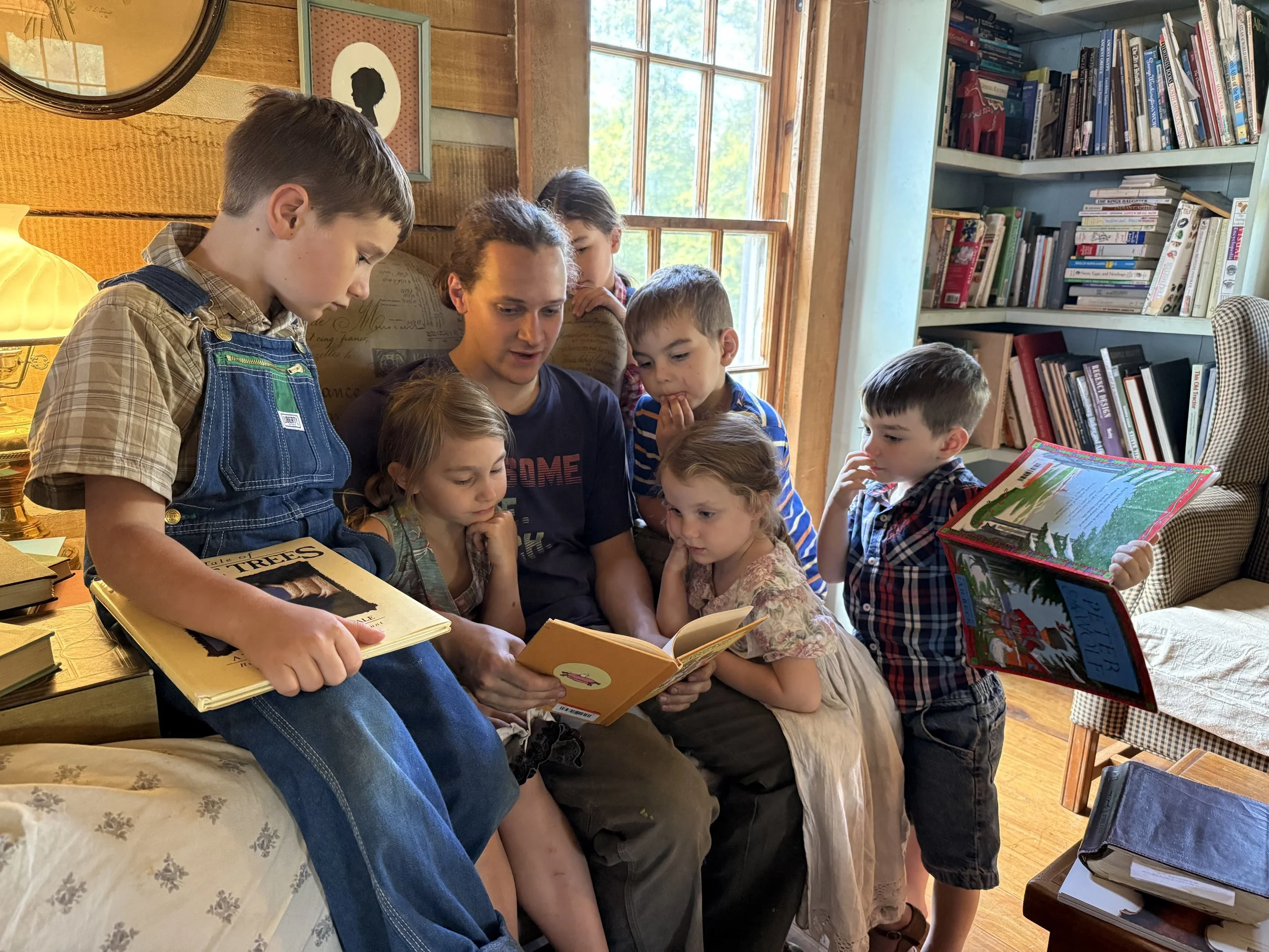 Elijah is here to help in the forge 1-3 days a week, and he’s great help there- but he is also called on frequently to put on his “Uncle ‘Lige” hat and read a book or two. The kids love to be read to, and we read a lot.