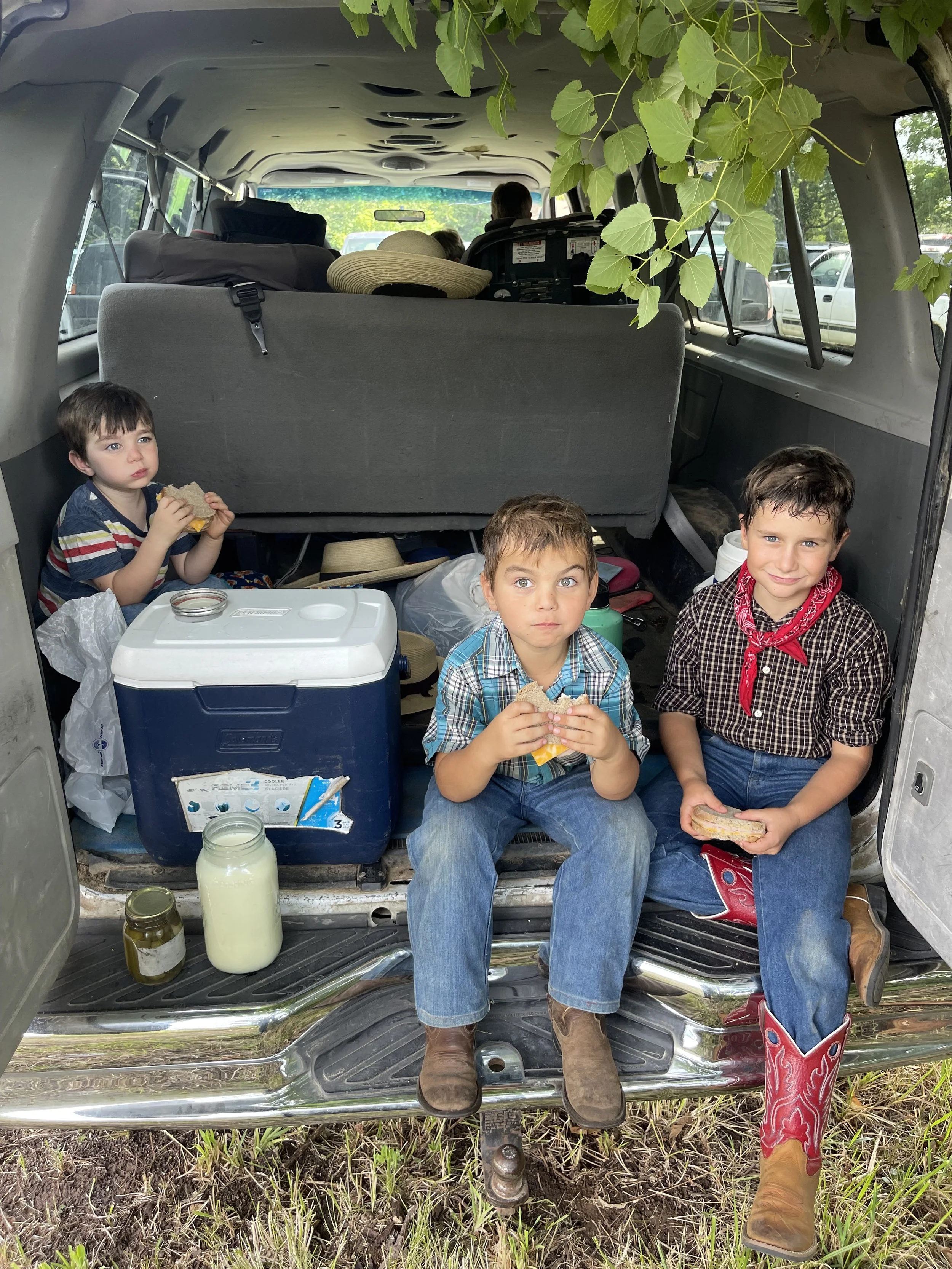 The boys wolfed down every bite of their sandwiches Mom packed for them, and were ready for more Threshing Show!