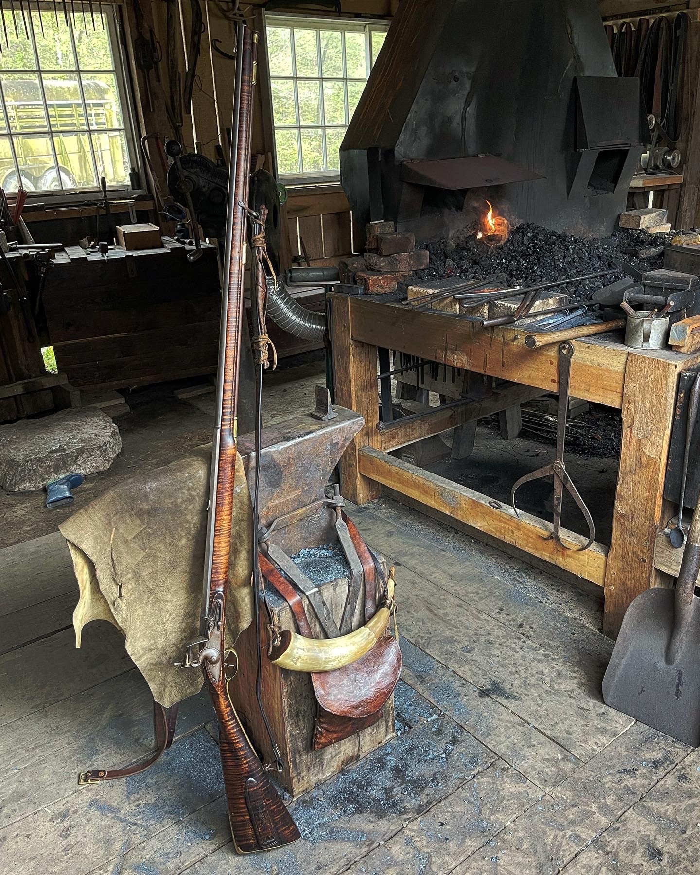 Recently, I also got my first nice flintlock! A dear friend decided his reproduction Pennsylvania smooth rifle named “Mordecai” needed a new home, so he gifted/traded it to me. A nice surprise- I’ve wanted a good flintlock all my life, but it was going to be a while yet before I could afford one. Flintlock guns were really what started me down the path at a tender age to becoming a passionate history buff, which in turn led me to get into blacksmithing- but I will save that story (and more details and pictures of Mordecai) for a separate post.